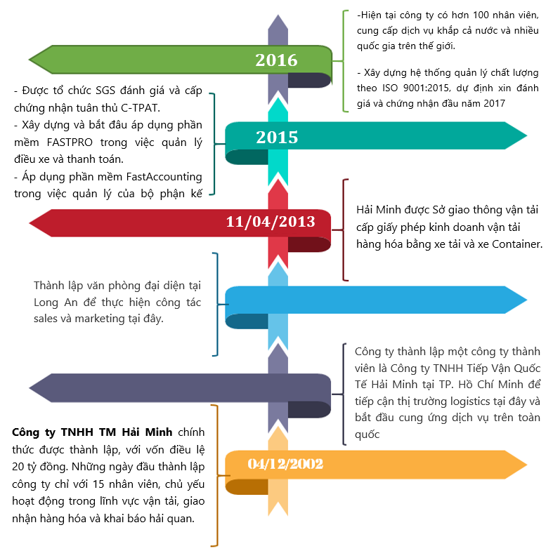 Được thành lập vào năm 2002, công ty TNHH Thương Mại Hải Minh được biết đến như một nhà cung cấp chuyên nghiệp các dịch vụ logistics như vận tải, khai báo hải quan cho các doanh nghiệp xuất nhập khẩu.